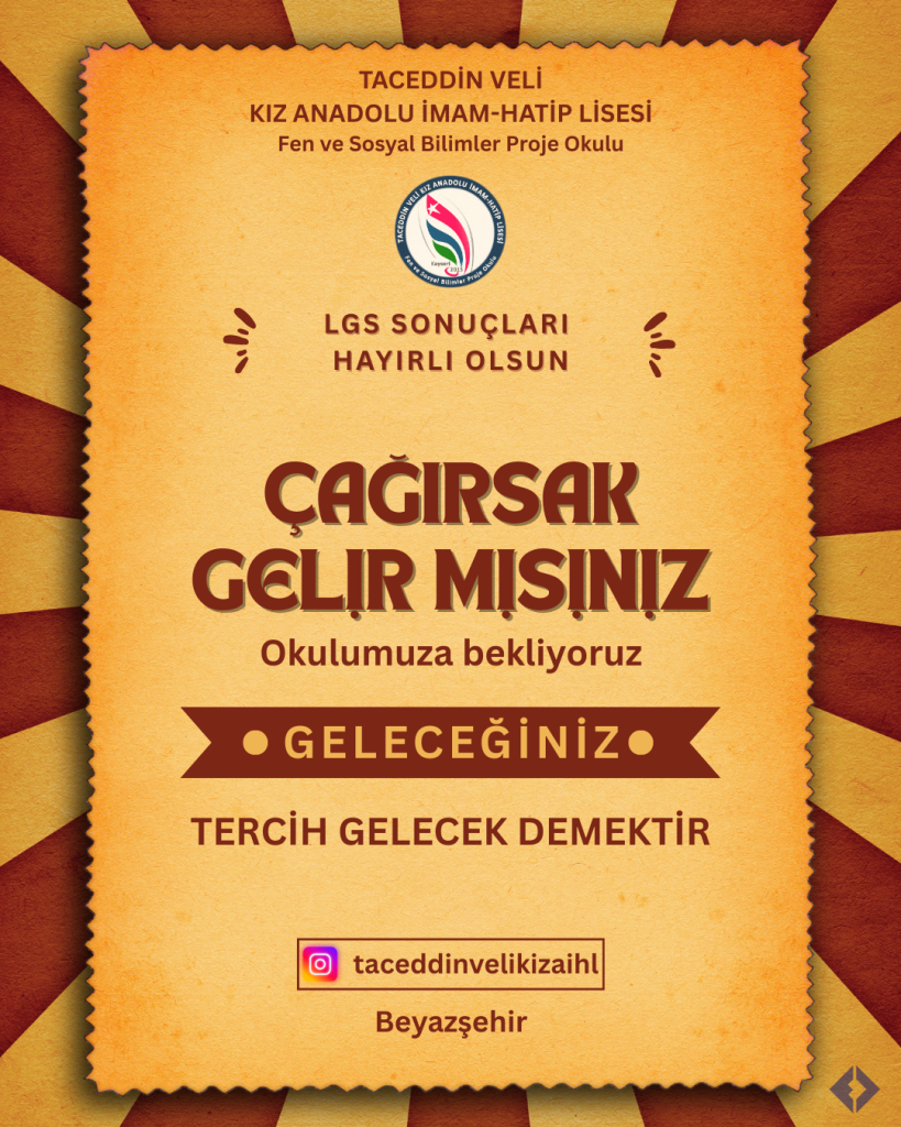 Taceddin Veli İmam Hatip Lisesiyiz biz.