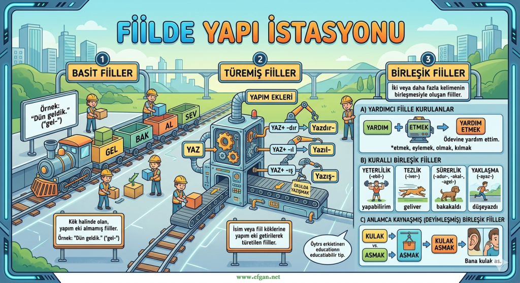 Bu bölüm, konunun temel kurallarını hatırlamanız için hazırlanmıştır. Basit, türemiş ve birleşik fiillerin yapısal farklarını inceleyerek pratik etkinliklere hazırlık yapacaksınız.
